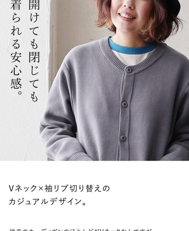 綿 100 カーディガン チクチクしない しっかり 厚手 長袖 メンズ レディース リブ 重ね着 お尻 隠れ カバー 毛玉できにくい 洗濯可能 Vネック ニットカーディガン 春 大人 カジュアル パティ SAIL セイル