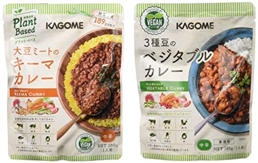 【セット商品】カゴメ 野菜をおいしく食べるカレーアソートセット 2種 X 各5個(3種豆のベジタブルカレー 180G、大豆ミートのキーマカレー 180G)