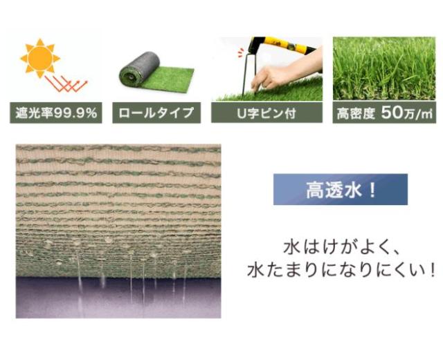 - 試しに1m??10mを一つ買いましたが、全然足りないので追加で三つ購入しました。水はけは良いようです。雑草が生えないかは、まだわかりませんが、本物の芝生のようできれいです