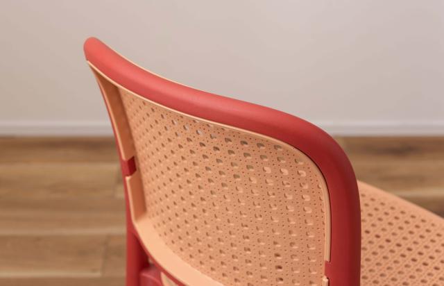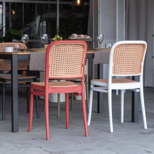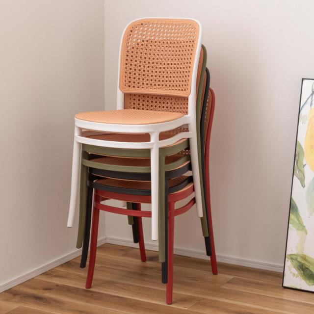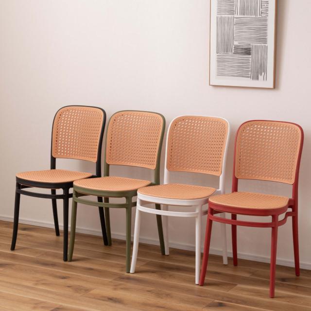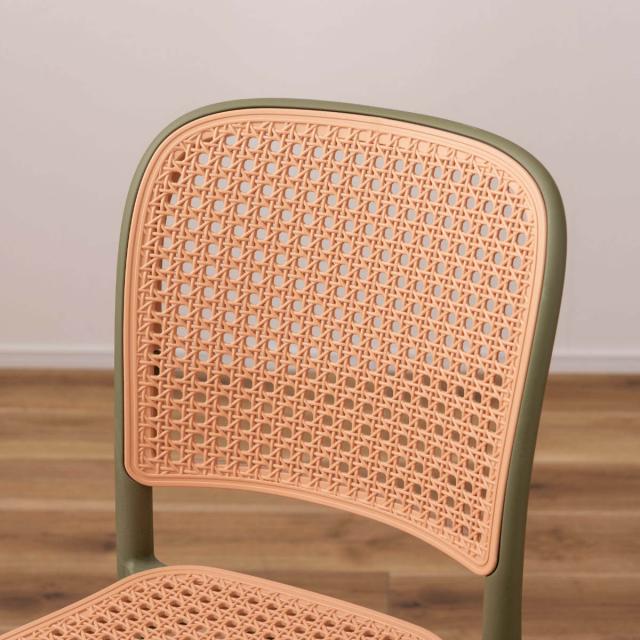 ラタン調デザインを施したスタッキングチェア