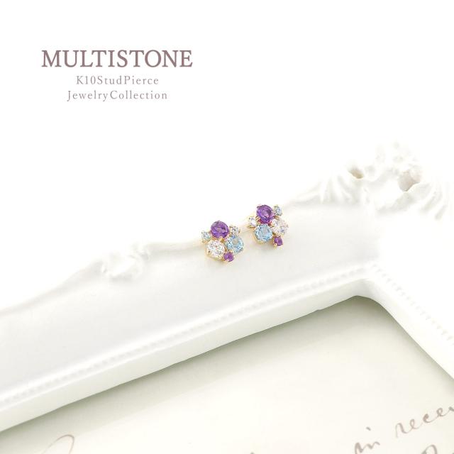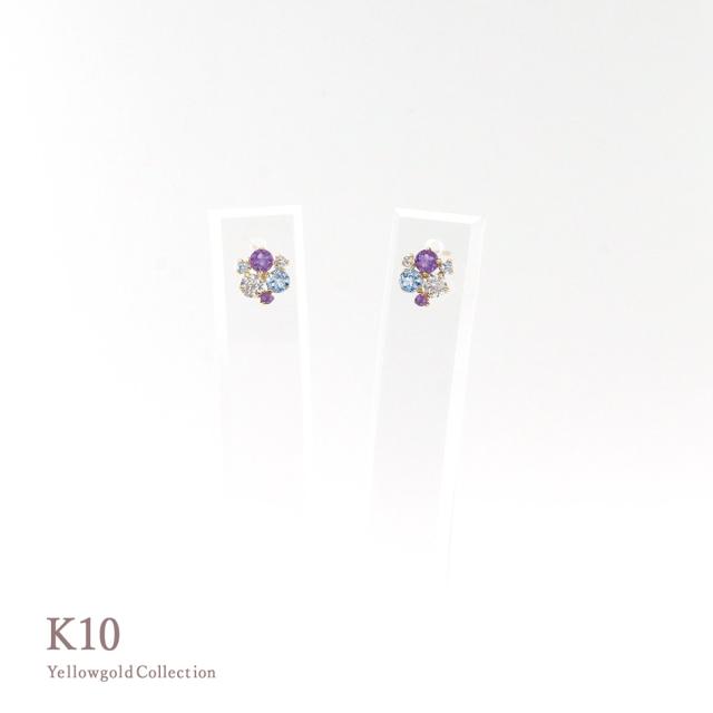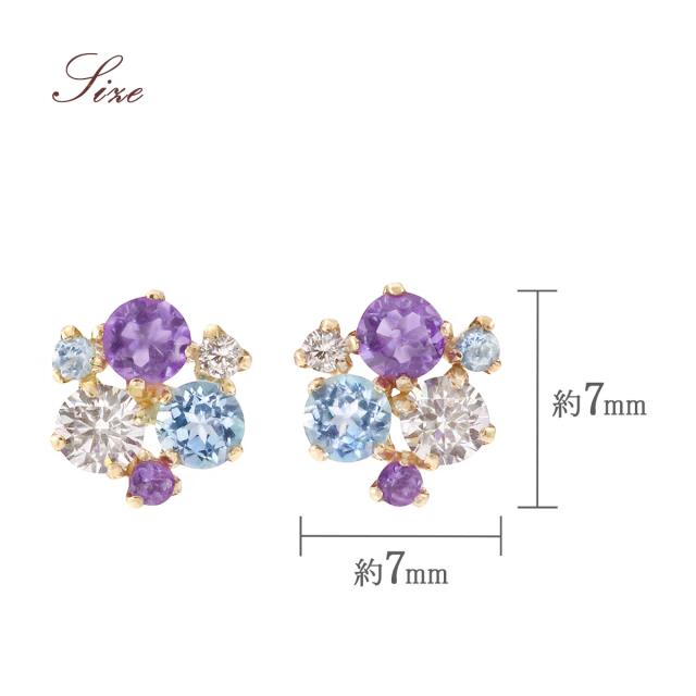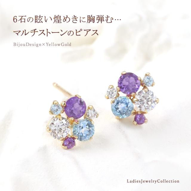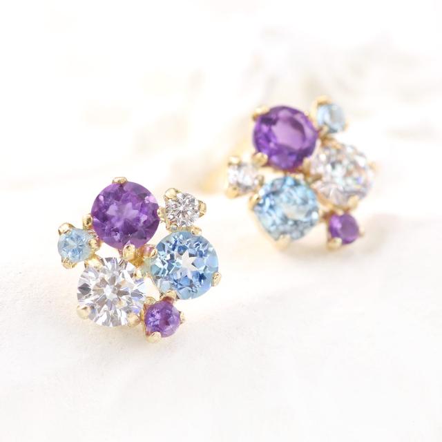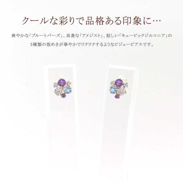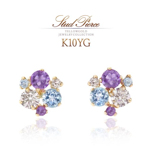 ビジューピアス アメジスト ブルートパーズ ジルコニア キラキラ 可愛い 10金 ジュエリー 10K K10 イエローゴールド 宝石 マルチストーン 天然石 プレゼント 昇進祝い ギフト ビジュー ピアス 本物 おしゃれ 2月 11月 誕生石 寒色 ブルべ 女性 彼女 嫁 母の日 ギフト 2026