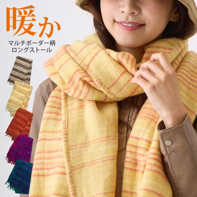 綺麗色 ストール 大判 マルチボーダー柄 軽くて薄いのに暖かい ロング マフラー 大きい メール便 200×45cm 洗える 男女兼用 羽織り st-110 エスニック BIG メンズ 幅広 レディース 秋冬 防風 防寒 長い おしゃれ カラフル 20代 30代 40代 50代 可愛い ギフト Xmas プレゼント
