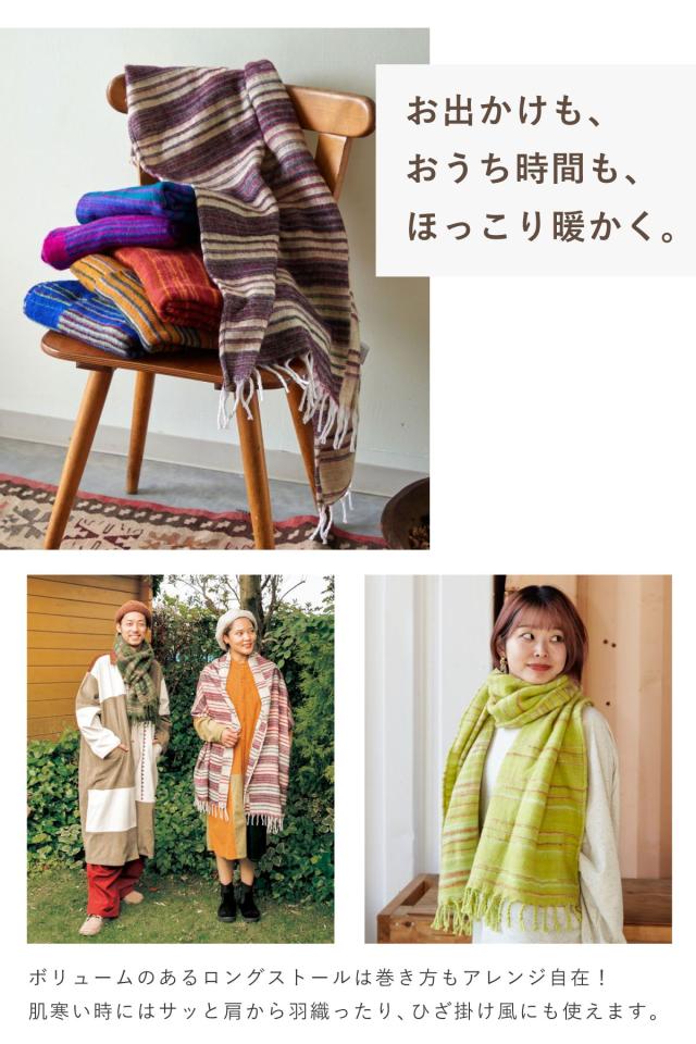 ロングサイズだから首元に巻くだけでなく肩へサッと羽織りスタイルもOK!