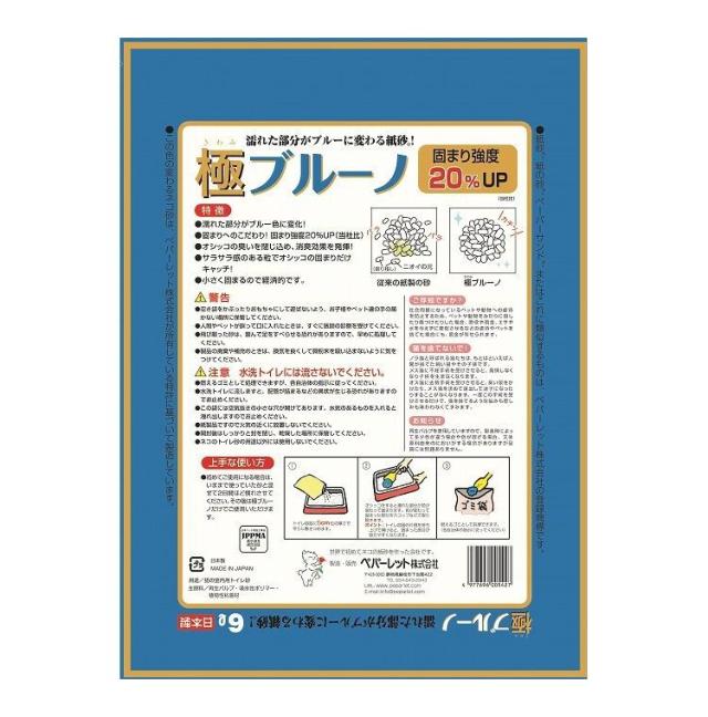 ペパーレット 極ブルーノ 6L 猫砂 紙製 紙砂 チャック付 固まる 強度アップ 色が変わる 燃やせる 燃えるゴミ 消臭 国産 日本製 猫すな ネコ砂 猫トイレ 猫 ねこ