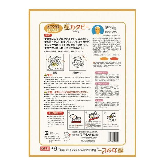 ペパーレット 極カタピー 6L 猫砂 紙製 紙砂 チャック付 固まる 強度アップ 燃やせる 燃えるゴミ 消臭 尿チェック 国産 日本製 猫すな ネコ砂 猫トイレ 猫 ねこ
