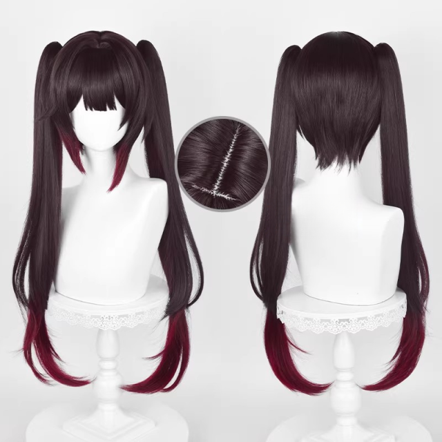 「送料無料」コスプレウィグ 濃い茶色と赤グラデーションツインテールヘア ツインテール付き ツインテール取り外し可能 日常用かつら 変装 ウィッグネット付き コスプレ上級者向け 崩スタ アニメ風 幻想系 地雷系 小悪魔系 ゴシック風 ドールイメージ