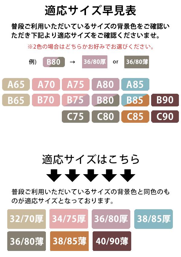 32/70AB厚(A65,B65対応) 34/75AB厚(A70,B70,A75,B75対応) 36/80AB厚(B75,A80,B80対応) 38/85AB厚(A85,B85対応) 36/80C薄(C75,B80,C80対応) 38/85C薄(B85,C85対応) 40/90C薄(B90,C90対応) |
