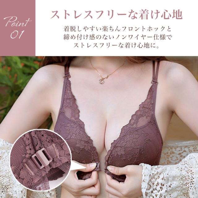 フロントホック ブラ ショーツ セット ノンワイヤー ナイトブラ ブラジャー 盛れる 脇高 下着 インナー 女性 快適 ブラジャー 授乳 小胸