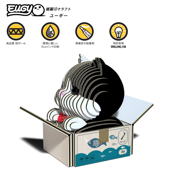 メール便送料無料 紙製 立体パズル EUGY 89 タキシードキャット エーゾーン ユーギー 動物 ペーパークラフト 工作 おもちゃ インテリア プレゼント ギフト
