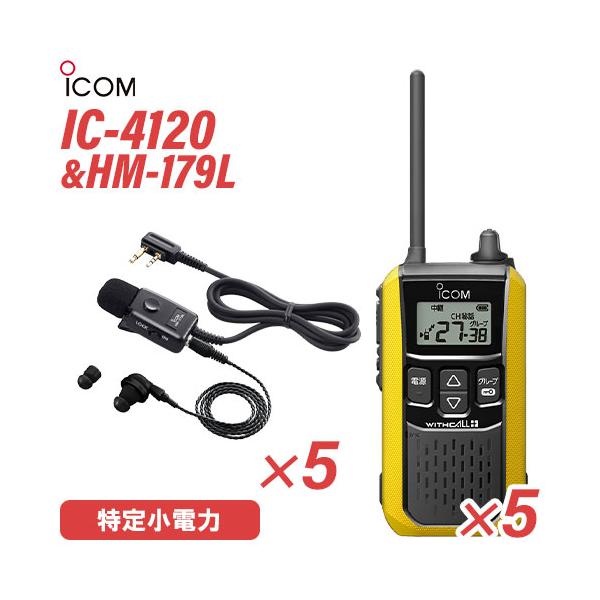 アイコム IC-4120Y(×5) イエロー 特定小電力トランシーバー + HM-179L(×5) イヤホンマイク 無線機