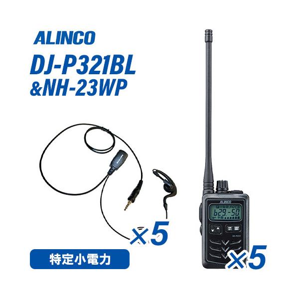 アルインコ DJ-P321BL ロングアンテナ 特定小電力トランシーバー (×5) + NH-23WP(F.R.C製) イヤホンマイク (×5) セット 無線機