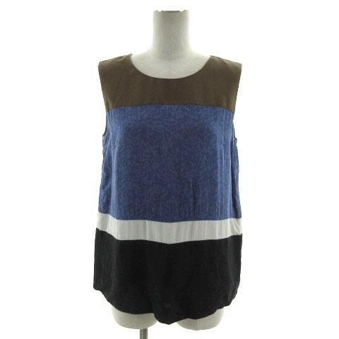 【中古】アイシービー iCB カットソー ノースリーブ 切替え 配色 カーキ ブルー 青 ホワイト系 白系 ブラック 黒 11