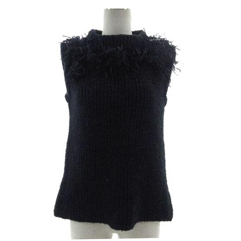 【中古】ヴゼット VOUSETES ニット モックネック フリンジ ノースリーブ コットン混 ネイビー 濃紺 レディース