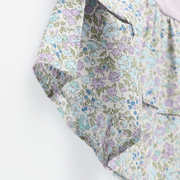 柄生地を使用した2段フリルが華やかな長袖Tシャツです