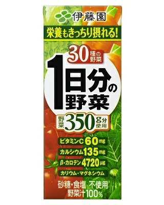 | 原材料 | 野菜(にんじん、トマト、有色甘藷、赤ピーマン、インゲン豆、モロヘイヤ、メキャベツの葉、レタス、ケール、ピーマン、大根、白菜、アスパラガス、グリーンピース、セロリ、しそ、ブロッコリー、かぼちゃ、あしたば、小松菜、ごぼう、ゴーヤ、しょうが、緑豆スプラウト(もやし)、パセリ、クレソン、キャベツ、ラディッシュ、ほうれん草、三つ葉)、レモン果汁、水溶性食物繊維、乳酸カルシウム、塩化マグネシウム、ビタミンC |