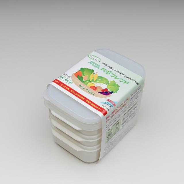 フードロス削減に貢献する環境対策 青果物保存容器 使いきれなかった野菜や果物を長期保存し食品ロスを削減。特許技術によりエチレンガスを分解・排出・防カビ作用で野菜・果物の新鮮さを保持。しかも繰り返し使用可能。【商品名】べジフレンド 青果物 鮮度保持 食品保存容器 【原料樹脂】本体:ポリプロピレン フタ:ポリエチレン 【耐熱温度】本体:120℃ フタ:70℃【耐冷温度】本体:−20℃ フタ:−30℃ 【容量】S:590ml【原産国】日本製
