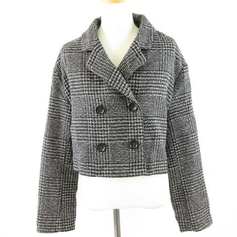 【中古】リノルーセ Linoluce しまむら ショートコート ツイード チェック 長袖 黒 白 M *A253 レディース