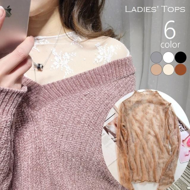 ブラウス シアー トップス レース レディース 女性 婦人 ハイネック インナー シースルー 重ね着 長袖 透け 花柄 チュール