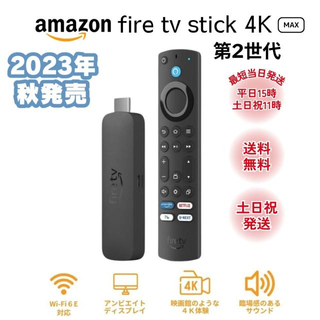 ファイヤースティックTV 4K Max 第2世代 Fire TV Stick アマゾン Amazon Alexa対応 リモコン付属 ストリーミングメディアプレイヤー 新品 カバー ラッピング対応