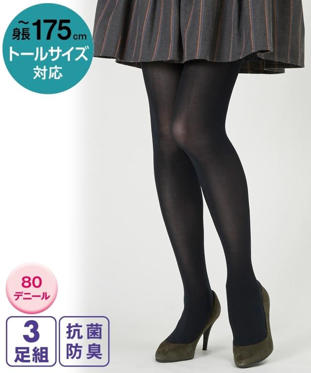 抗菌防臭 80デニールタイツ3足組(静電気防止)