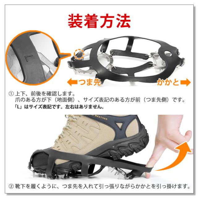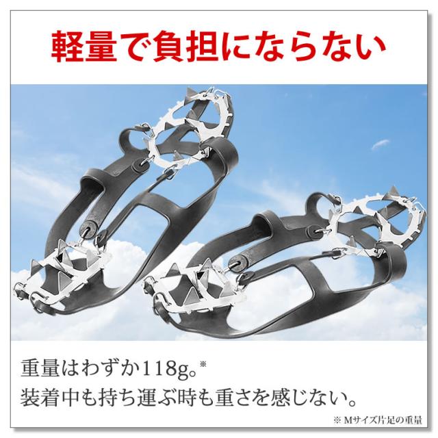 - 凍結道路にしっかり食い込み歩きやすい。靴へのセットも簡単