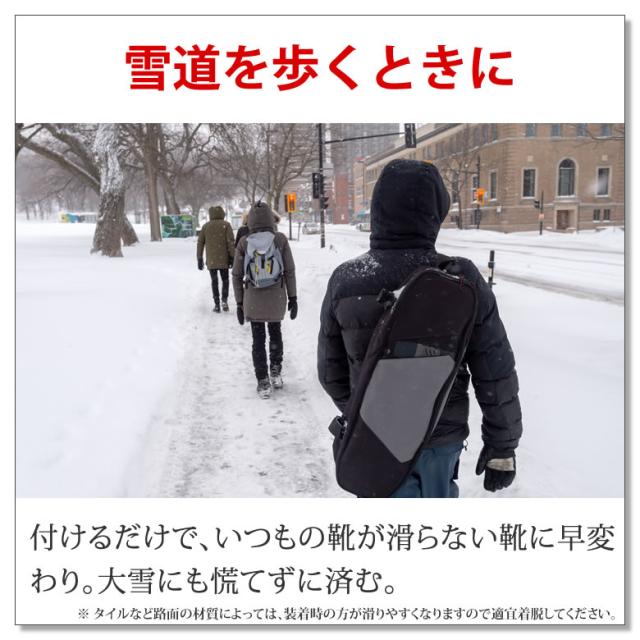 付けるだけで、いつもの靴が滑らない靴に変わるから、大雪にも慌てずに済んで安心。
