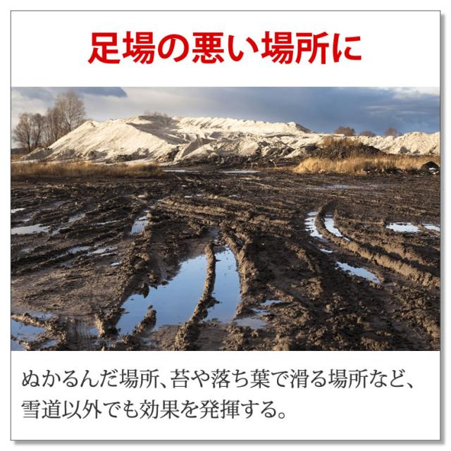 雪道以外にも、ぬかるんだ場所や苔や落ち葉で滑る場所などさま様々な場所で使えるから、冬以外も活躍。