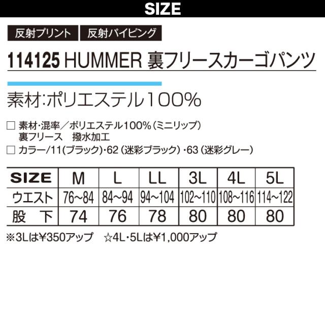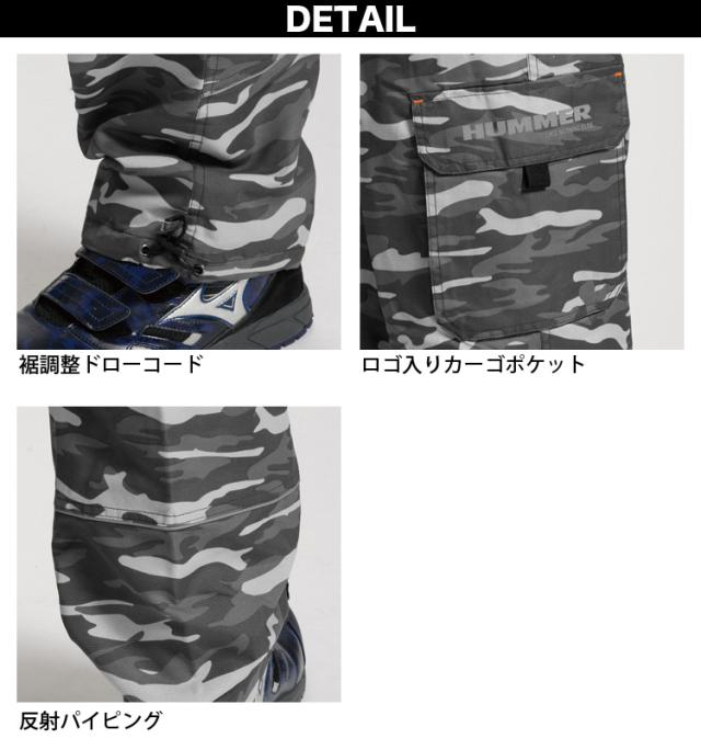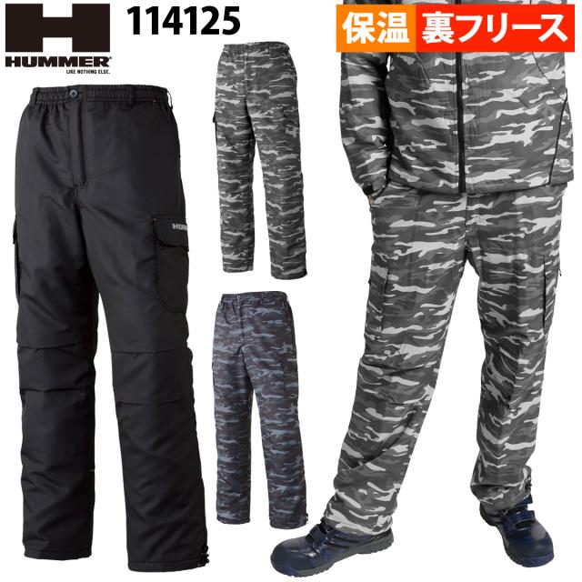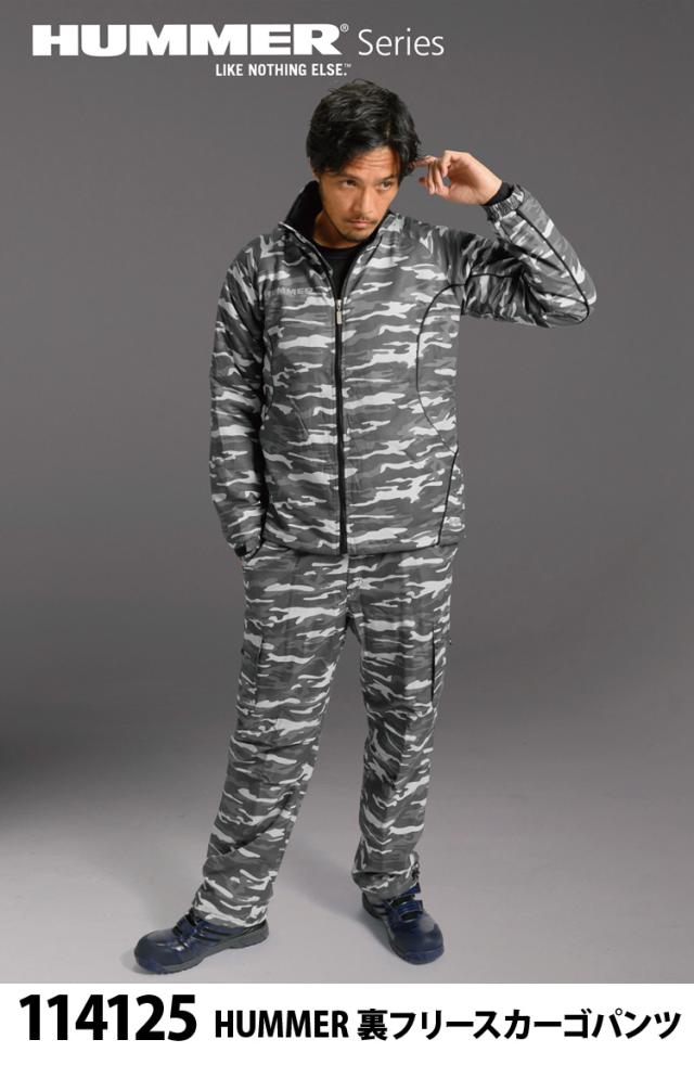 アタックベース HUMMER 裏フリースカーゴパンツ 114125 裾調整 反射パイピング 迷彩柄 カモフラ 撥水加工 保温 カジュアル 作業服 作業着 秋冬 メンズ ATACKBASE