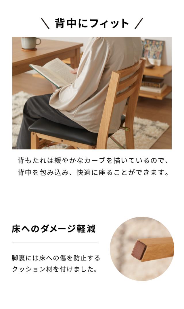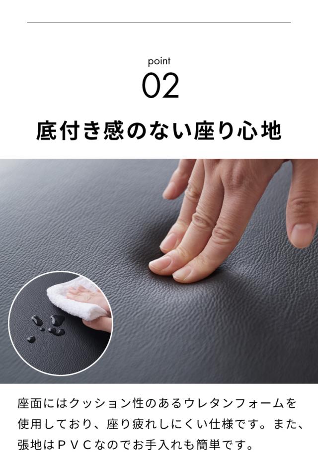 ・座面が大きく、かつウレタンの厚みがあるのでゆったり座れます。