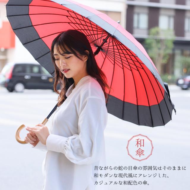 カジュアルにも合う和モダン配色の蛇の目風和傘は女性らしさ男性らしさを演出します。