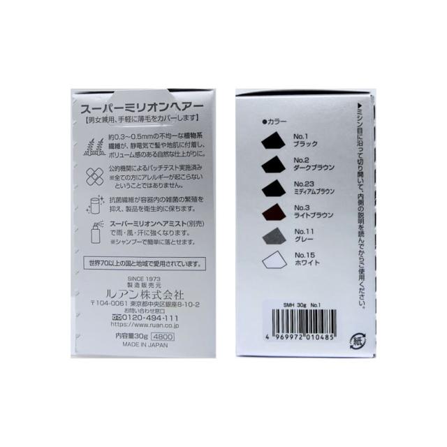 スーパーミリオンヘアー30g No.2ダークブラウン 約75回分 ふりかけ 増毛 脱毛症 白髪 薄毛 分け目 生え際 つむじ 簡単 便利 時短 外出 視線 送料無料