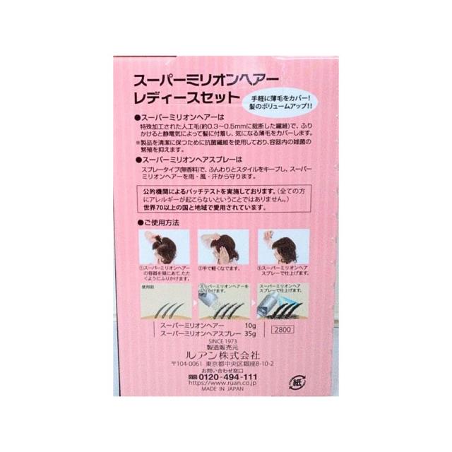 スーパーミリオンヘアー レディースセット 10g+スプレー35g No.1 ブラック 増毛 脱毛症 白髪 薄毛 分け目 生え際 つむじ 簡単 便利 時短 持ち歩ける 外出 視線 部分かくし ルアン 送料無料