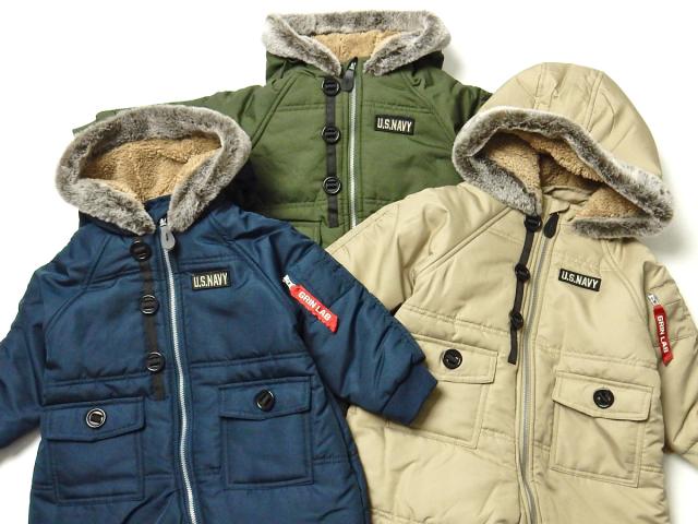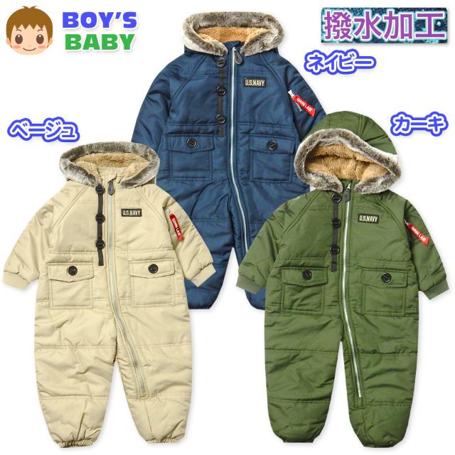 【送料無料】男児 ベビー 裏フリース 中綿 ジャンプスーツ アウター あったか 撥水 前開きファスナー N-3B カバーオール iw-0990