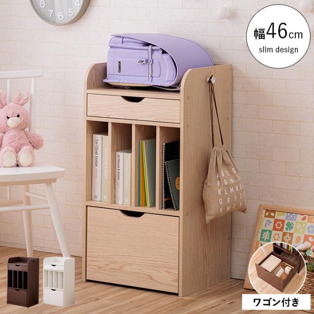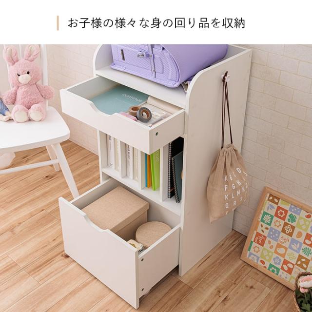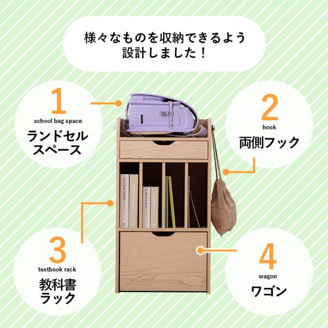 ランドセルラック ワゴン スリム 子供 「 スヴニール ワゴンタイプ 」 幅46×奥行36×高さ85cm おかたづけラック フック付き 収納 教科書収納 ランドセル置き おしゃれ かわいい 子供部屋 小学生 新生活