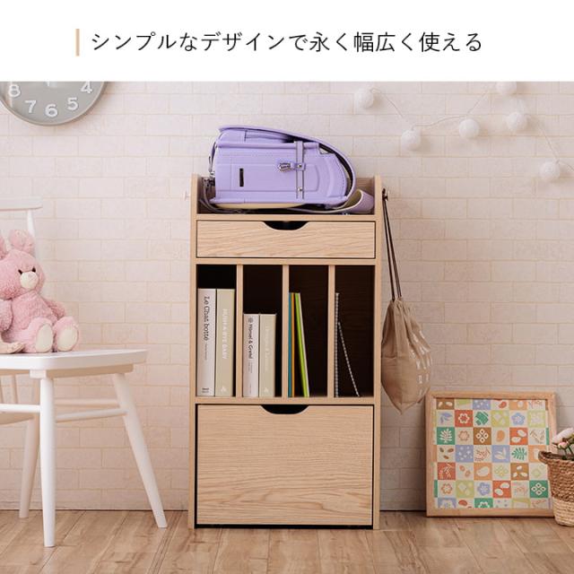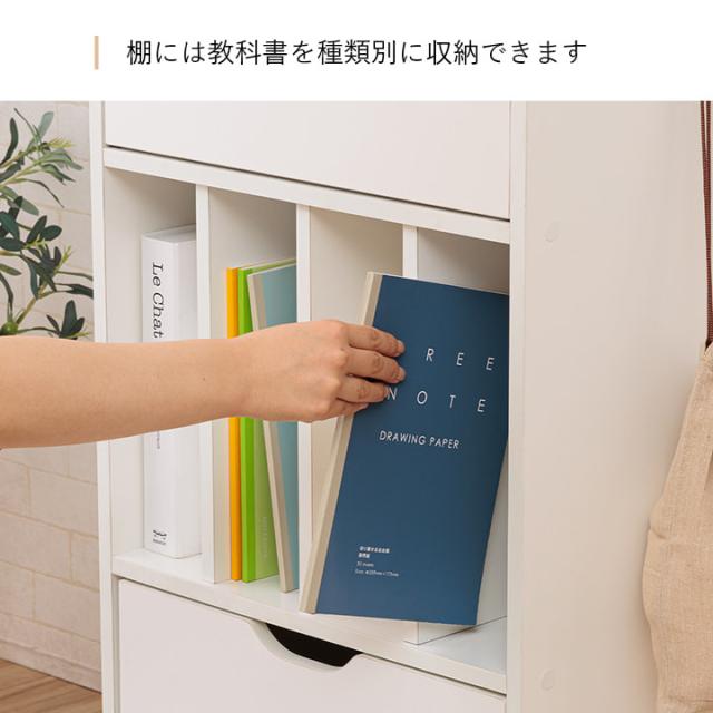 | ■取っ手のないシンプルなデザインで永く幅広く使える設計です。 ■お部屋になじみやすい無地・木目調デザイン。 ■収納に便利なワゴン付き。 ■様々なものを収納できるような設計にしました。 ■教科ごとに教科書を分けて入れることができます。 ■フック付き ※こちらの商品は【組立品】です。 ※組立時間の目安:約1時間 ※側面に付いているフックの耐荷重は約5kgです。 |