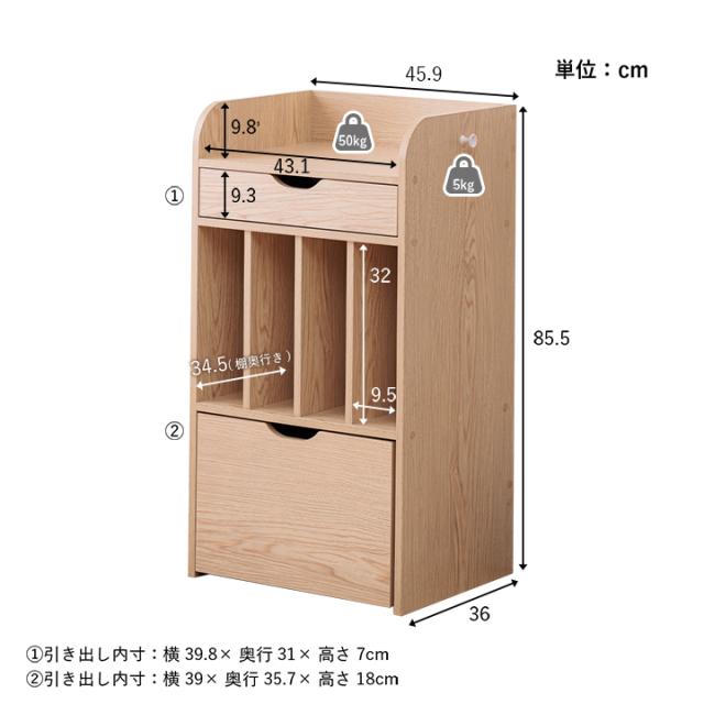 | 表面素材:(棚板・側板・背板)プリント紙化粧繊維板 芯材:(棚板・側板)パーチクルボード |