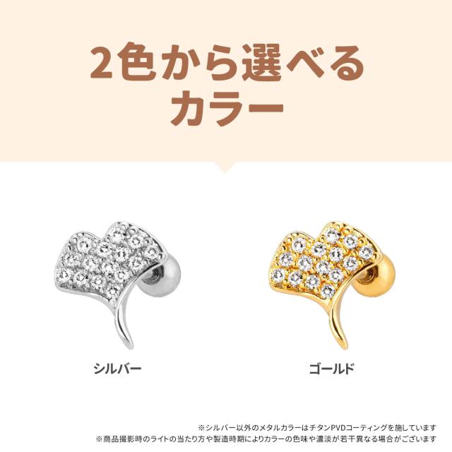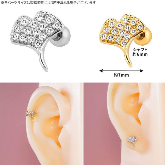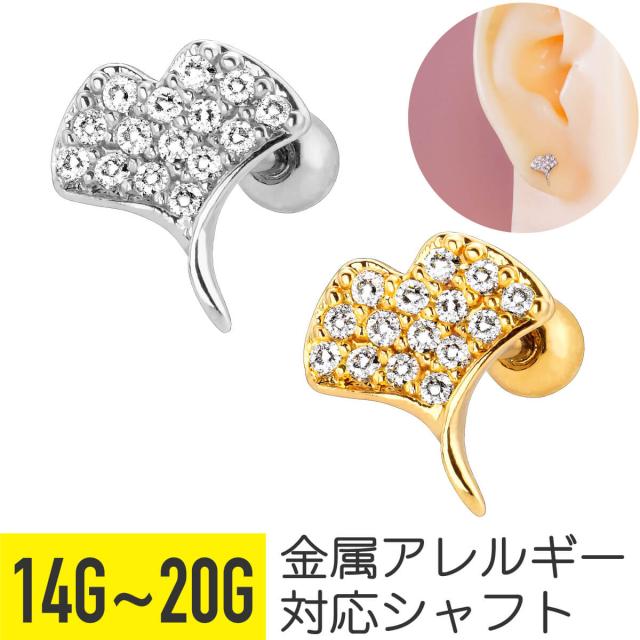 イチョウ モチーフ パヴェ ストレートバーベル 14G 16G 18G 20G サージカルステンレス ジルコニア ヘリックス 軟骨ピアス ボディピアス