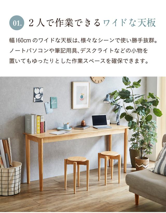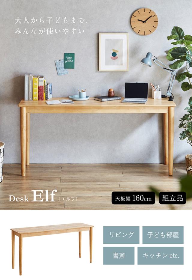 デスク Elf(エルフ) 幅160cm 単品 学習机 リビングデスク ワークデスク 学習デスク カウンターテーブル 作業台 木製 子供 大人 子供部屋 書斎 リビング おしゃれ