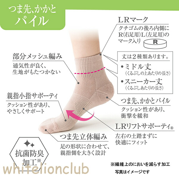 はきぐちLRマーク付 部分メッシュ編み つま先パイル