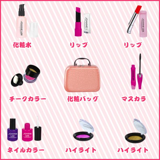 大容量の化粧バッグが付属し、使った後に全てのメイク道具をバッグに入れることができます、子どもはちさいい頃から、片付け能力を身に付けるかもしれません。更にバッグの自体に鏡がついていて、とっても便利!