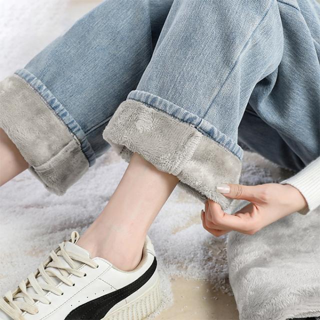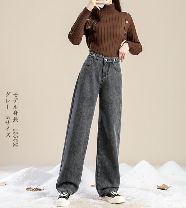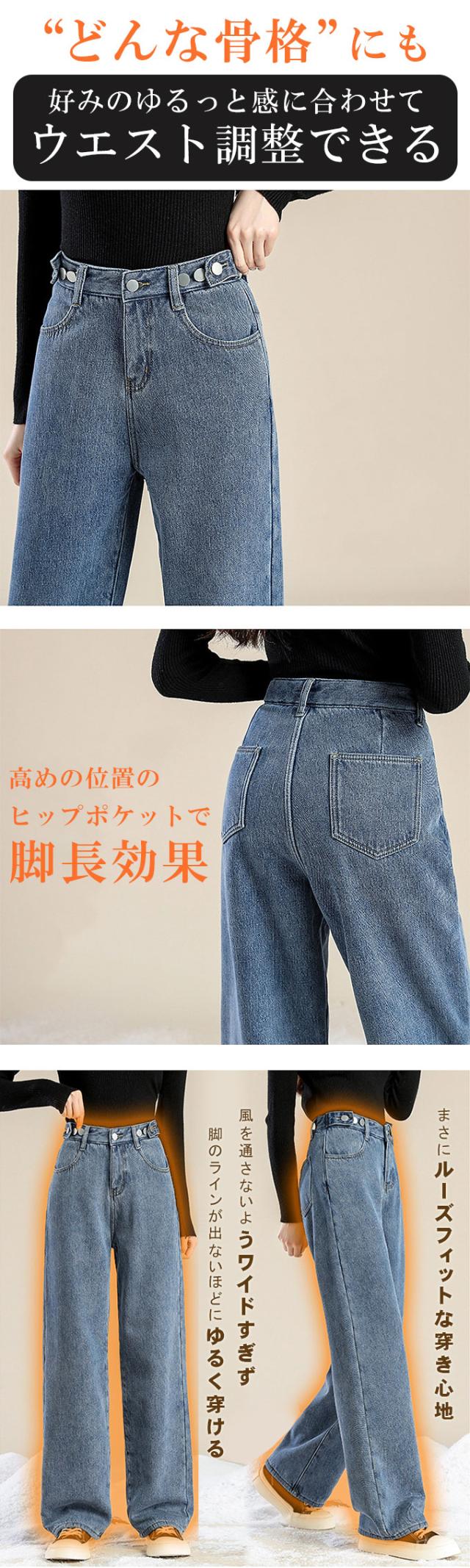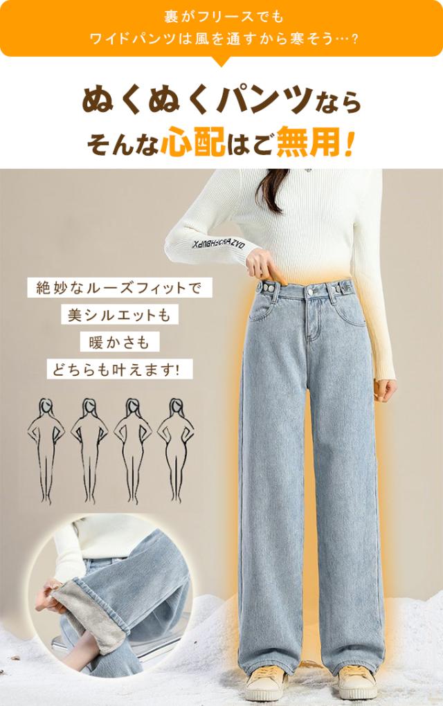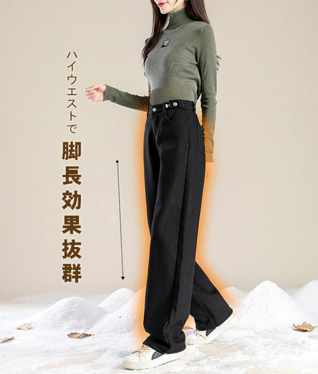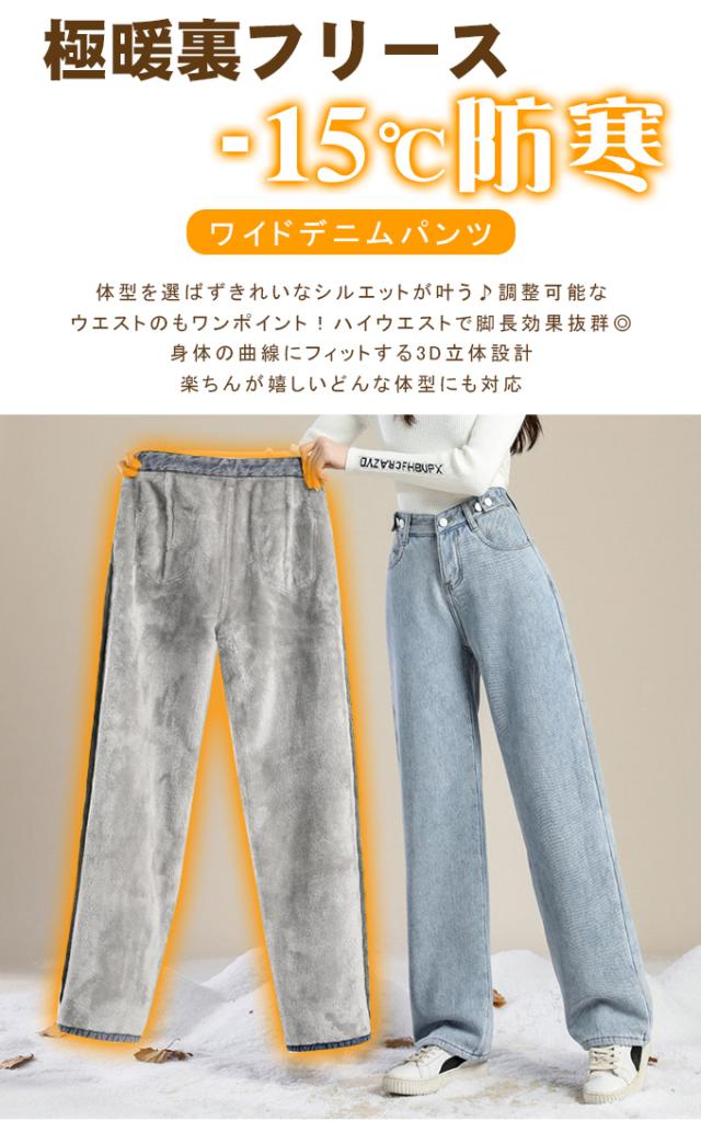 半額クーポン配布中、2990円、-15℃防寒 極暖裏フリース ワイドデニム 裏起毛ロングパンツ 防寒 超暖 ゆったり 通勤 ぽかぽかパンツ ぬくぬくパンツ脚長効果抜群 レディース