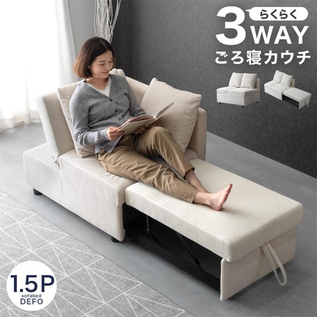 ソファ 3WAY コーデュロイ カウチ 1.5人掛け リクライニング 肘付き コンパクト シングル 一人暮らし ソファー フロアソファ リクライニングソファ カウチソファ カウチ 1人掛け 一人 1人掛けソファ