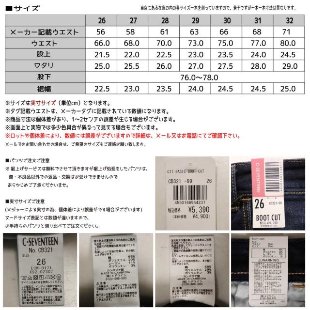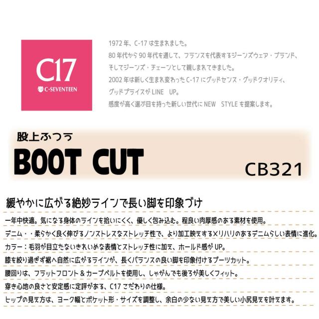 C-17 デニム ジーンズ CB321 ブーツカット 股上ふつう フレアー ストレッチ レディース ジーパン シーセブンティーン C-SEVENTEEN C17