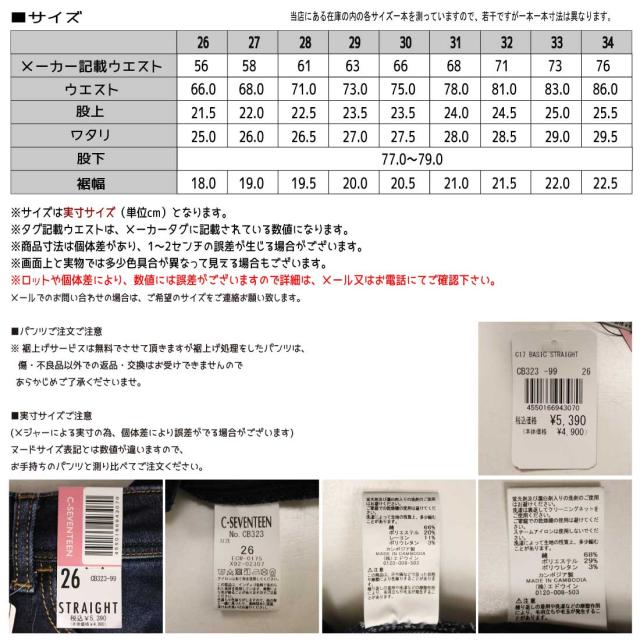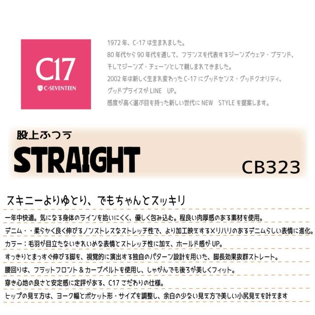 C-17 デニム ジーンズ CB323 ストレート 股上ふつう ストレッチ レディース ジーパン シーセブンティーン C-SEVENTEEN C17 ベーシック