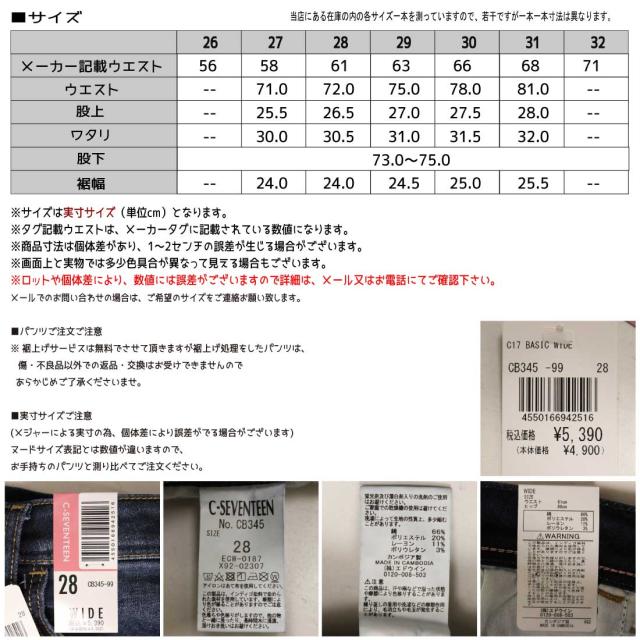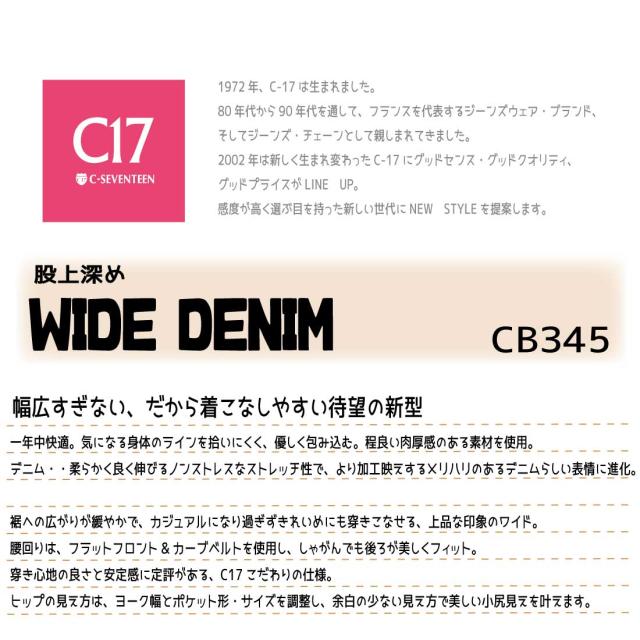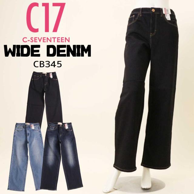 C-17 デニム ジーンズ CB345 ワイドパンツ 股上深め フレアー ストレッチ レディース ジーパン シーセブンティーン C-SEVENTEEN C17