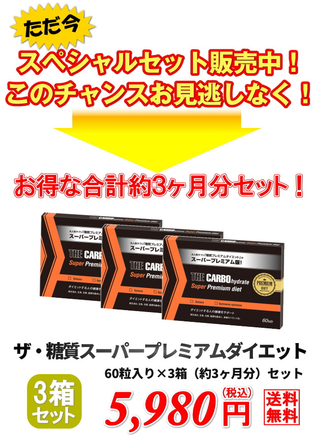 ザ糖質スーパープレミアムダイエット 60粒入り×3箱セット(約2カ月分) ダイエット サプリ サラシア ギムネマ 糖質制限 糖質カット