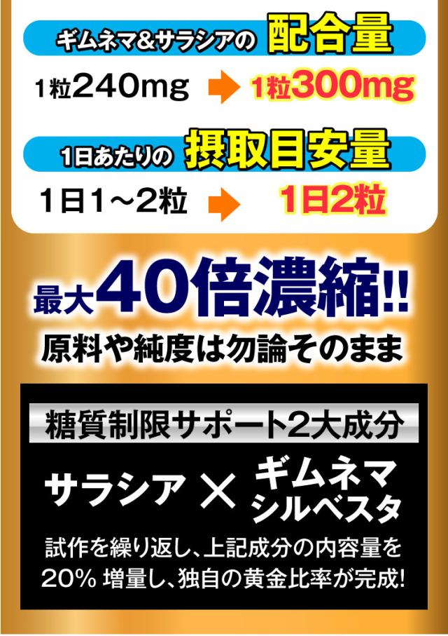 従来品(ザ・糖質プレミアムダイエット)をもとに、より「高い実感」を求め、ギムネマとサラシアが引き立てあう最適な配合比に設定。