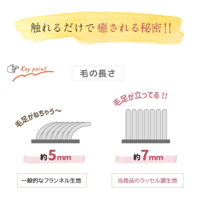 ふわふわ心地良いラッセル調生地は、毛足が立ってて約7mm。ふんわりした触感を保ちます。