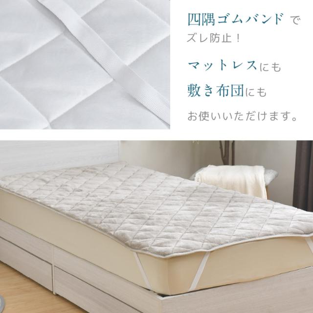 四隅強力ゴム付きでずれにくく、敷き布団はもちろんマットレスにもお使い頂けます