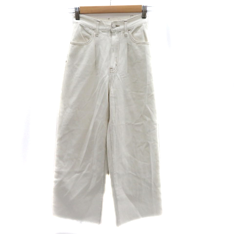 【中古】エムズエキサイト デニムパンツ ジーンズ ストレートパンツ ロング丈 フリンジ F 白 ホワイト レディース